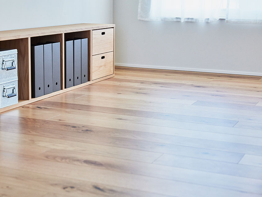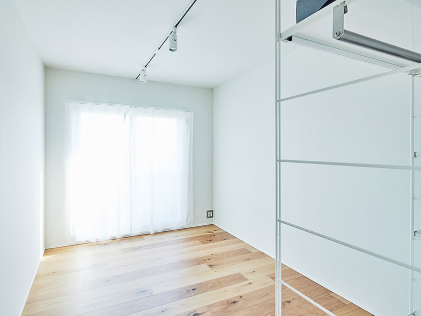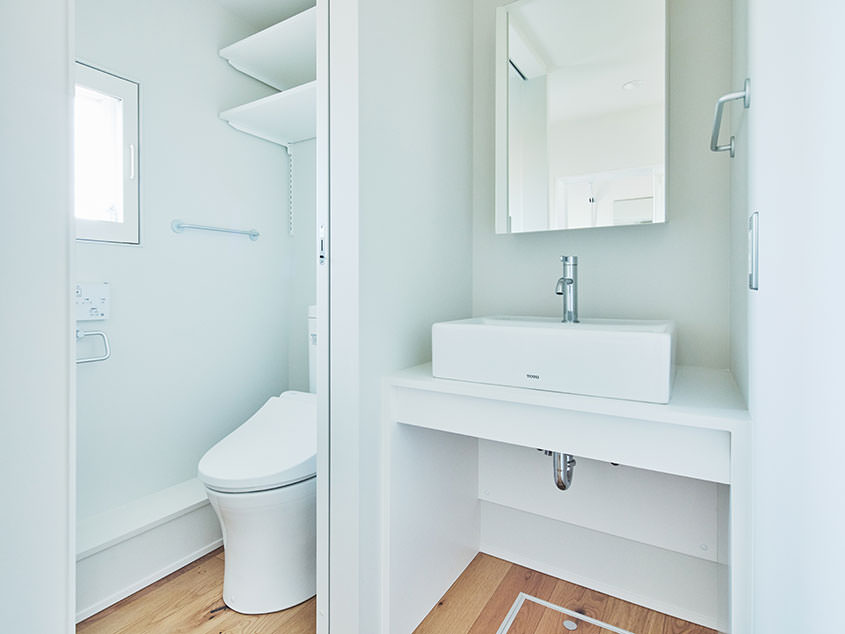 個室は2部屋設けています。ダイニングキッチンと隣り合っているお部屋は、引戸を引き込むことでリビングとして使うことができます。そのほか、テレワークスペースや子ども部屋など、用途に合わせ、使い方を変えられます。ぐるりと回遊できる間取りなので、さまざまな使い方ができそうです。収納は家具を利用することで、間取りの変化にも対応できるようにしています。お風呂は既存と大きさは変わりませんが、ユニットバスへ変更することで性能面も使い勝手も改善しています。洗面脱衣室も新たに設けました。
