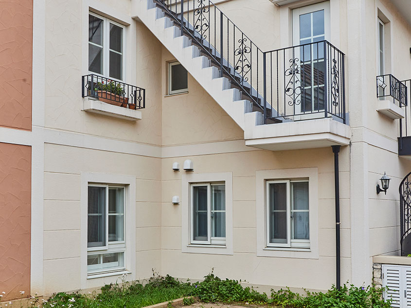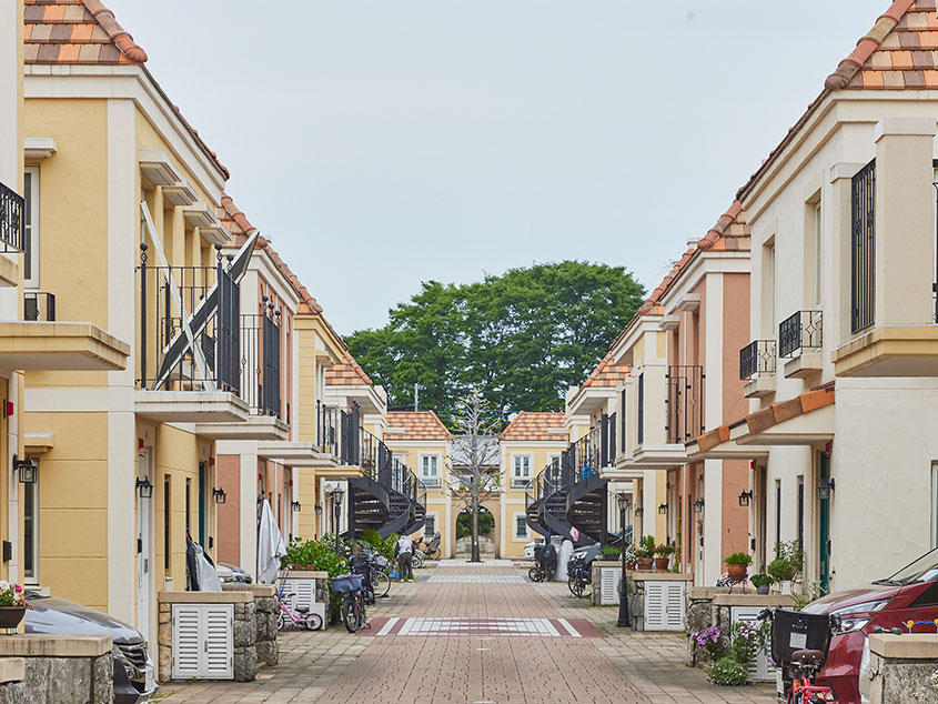 セボン紅葉丘メープルタウンは外観と共用部がイエローやオレンジを基調とした南欧風のデザインで統一された、可愛らしいテラスハウスです。今回リノベーションしたのは、このテラスハウスの1階のお部屋。