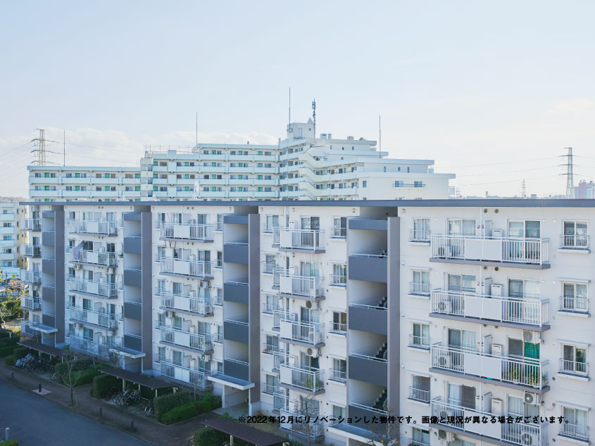 神奈川県藤沢市と茅ケ崎市にまたがる湘南ライフタウンは、3万人以上が暮らす大規模なニュータウンです。今回は、その中に位置する駒寄第二住宅の5階の住戸を、MUJI INFILL 0でリノベーションしました。