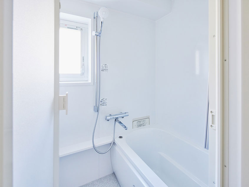 玄関の右手には脱衣所、浴室、トイレをまとめた水回りスペースを確保。浴室は一般的な団地よりも洗い場を少し広めに確保しているので、家族でのバスタイムを満喫しましょう。