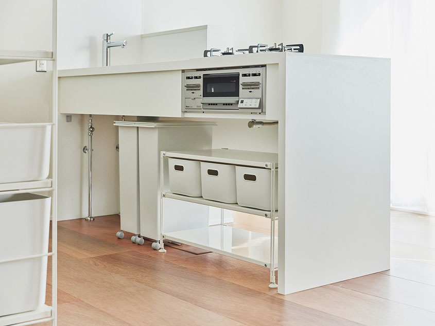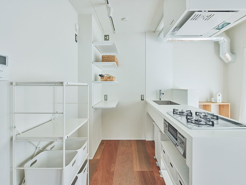 キッチン前のちょっとした空間はデスクを置いてテレワークしたり、収納をおいてキッズスペースにしたりとフレキシブルに使えます。 広めの個室は家具で仕切ることで、コンパクトですが2部屋に分けて使うこともできます。