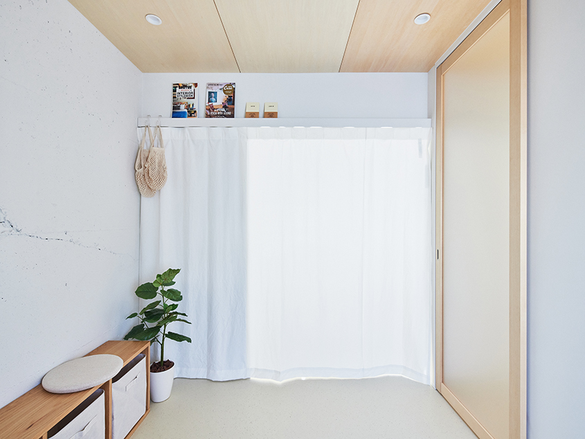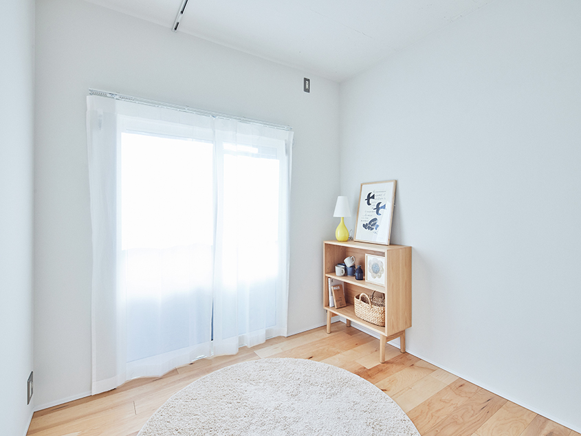 リビングダイニングキッチンとフリースペースをカーテンで仕切ることで、個室をもう1部屋作ることができます。書斎や子供部屋など住まう方に合わせてアレンジすることができます。
