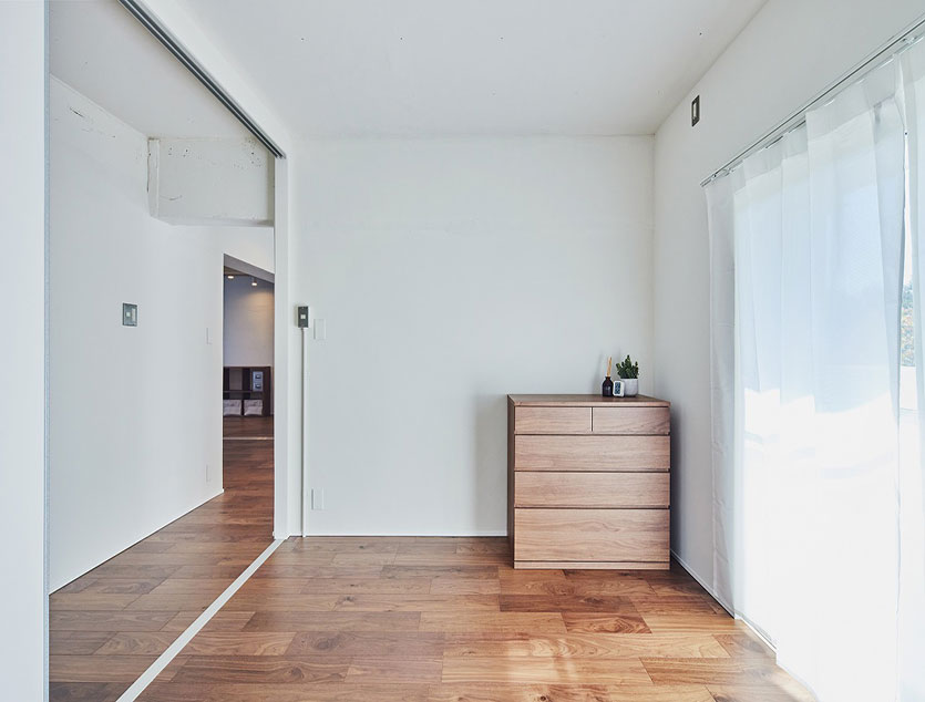 個室を仕切っている引戸を開け放つと全てのお部屋が緩やかにつながり、どこにいても家族の気配を感じられるような間取りです。