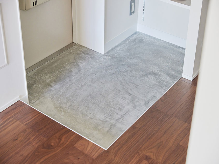水まわりは、洗面台を廊下に設置することでゆとりのある空間に生まれ変わりました。洗濯機置き場上には棚を設け、細々とした日用品もきちんと収納できます。バスケットやファイルボックスを使って、より使いやすくカスタマイズしてみてください。