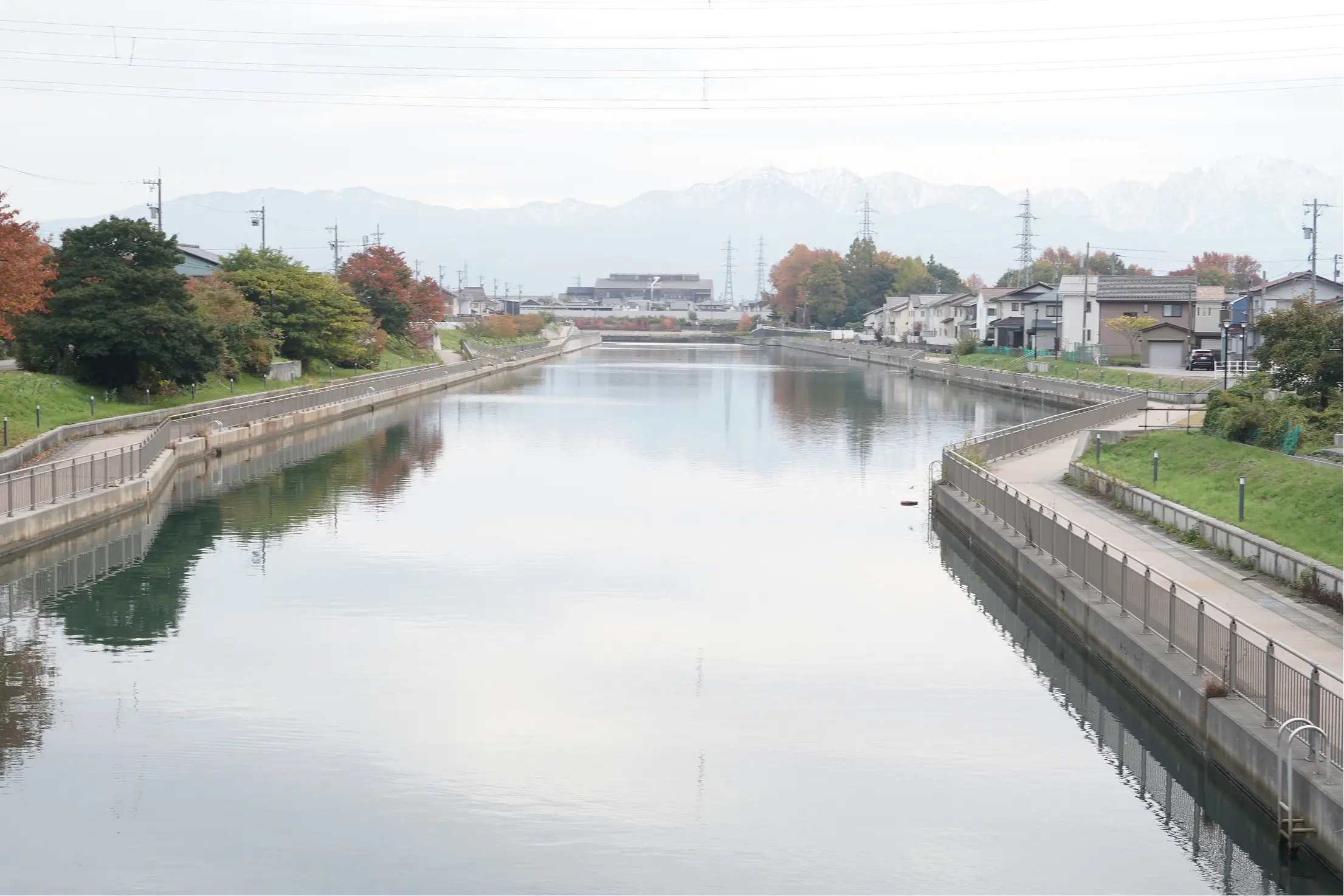犬島新町の大きな魅力は、周辺に広がる豊かな自然環境です。エリア一帯は水と緑に囲まれており、なかでも「富岩運河」が暮らしに潤いを与えてくれます。富岩運河は、富山の水辺を代表する美しい運河で、富山湾と富山市中心部を結ぶ水の交流路として親しまれてきました。運河沿いに整備された遊歩道を歩けば、四季折々の風景が楽しめ、日常の中に自然とふれあう時間を取り入れることができます。