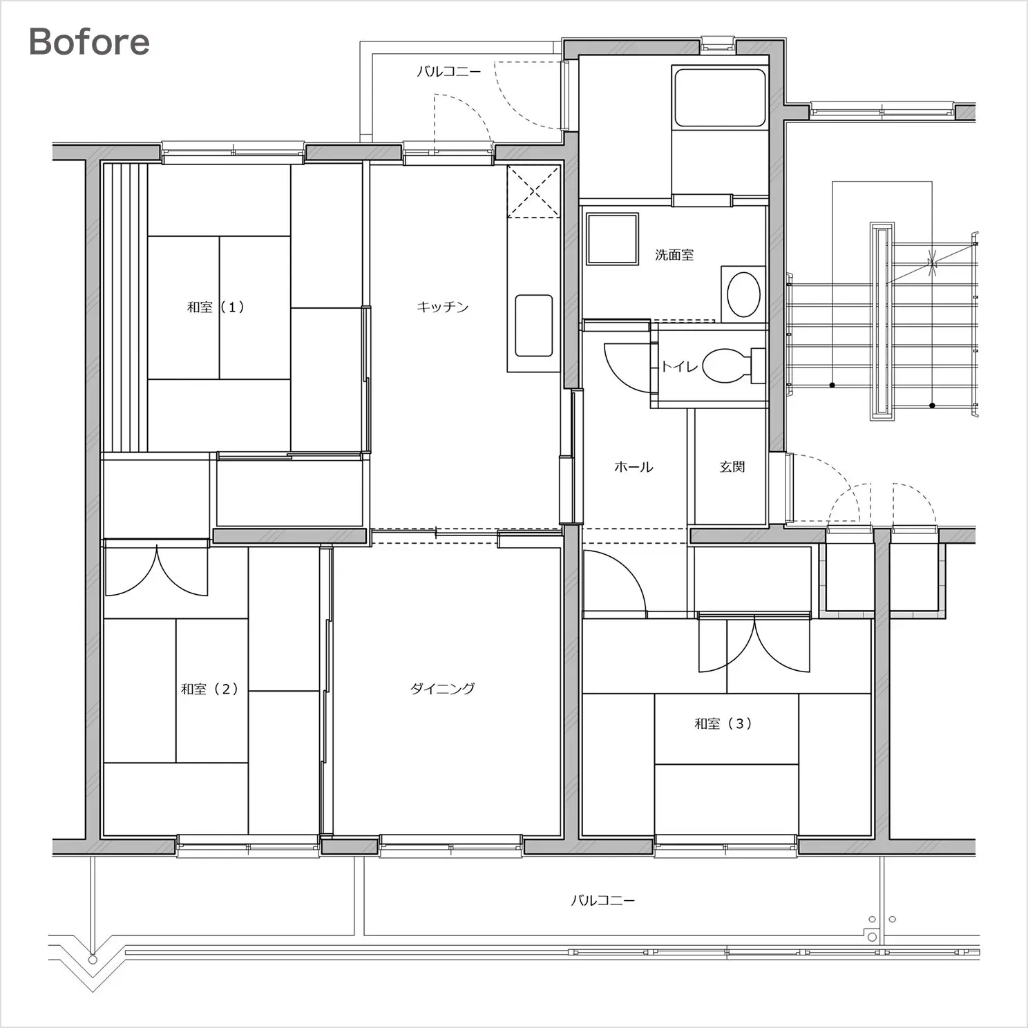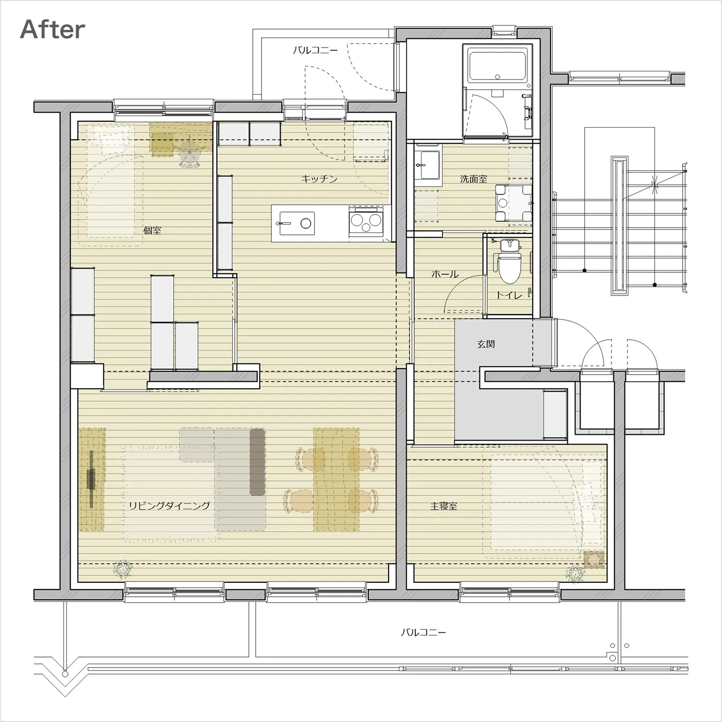 ※図中の破線家具はプラン例となります