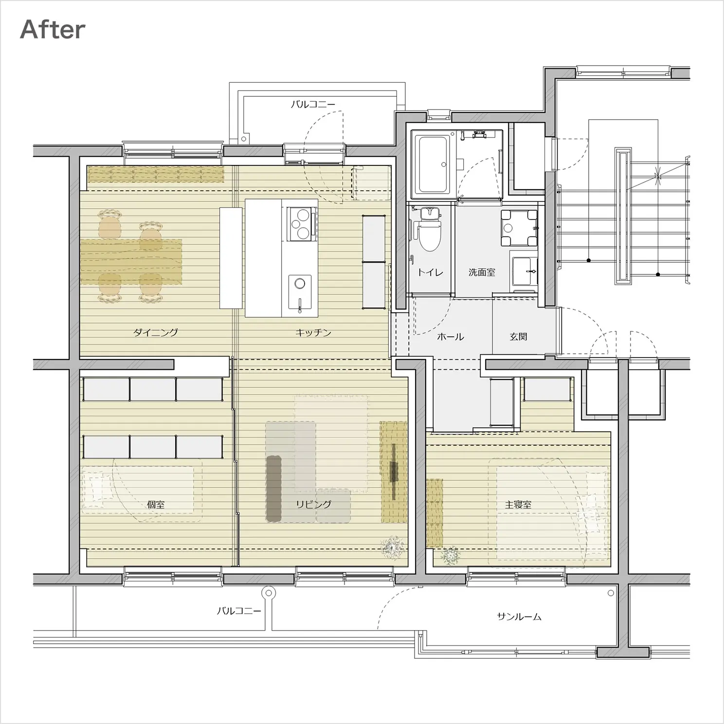 ※図中の破線家具はプラン例となります