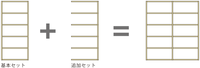 基本セットと追加セットの組み合わせで自由に自分だけの収納がつくれます。