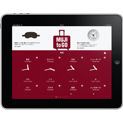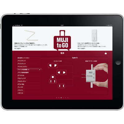 - 画面の上部では、旅行や移動をより快適にする無印良品のアイテムを、それぞれの機能に合わせて紹介します。