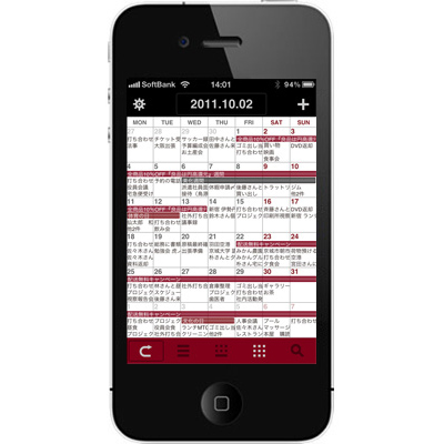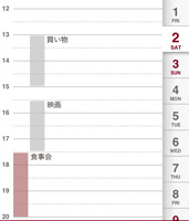 全月表示、日表示に加えて、半月表示でもスケジュールを確認できます。縦スクロール切替とし、スケジュールが過密になっても見やすくしました。