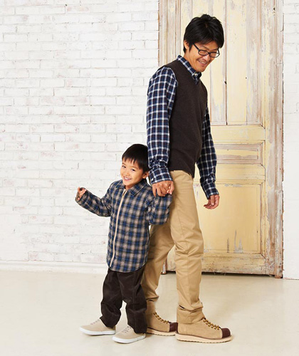 トレンドのチェック柄、パパとぼくで選んだのは男子カラーのあおいろ