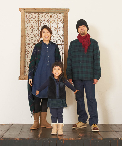 おそろいのチェックでおめかしして、三人で早く出かけよう