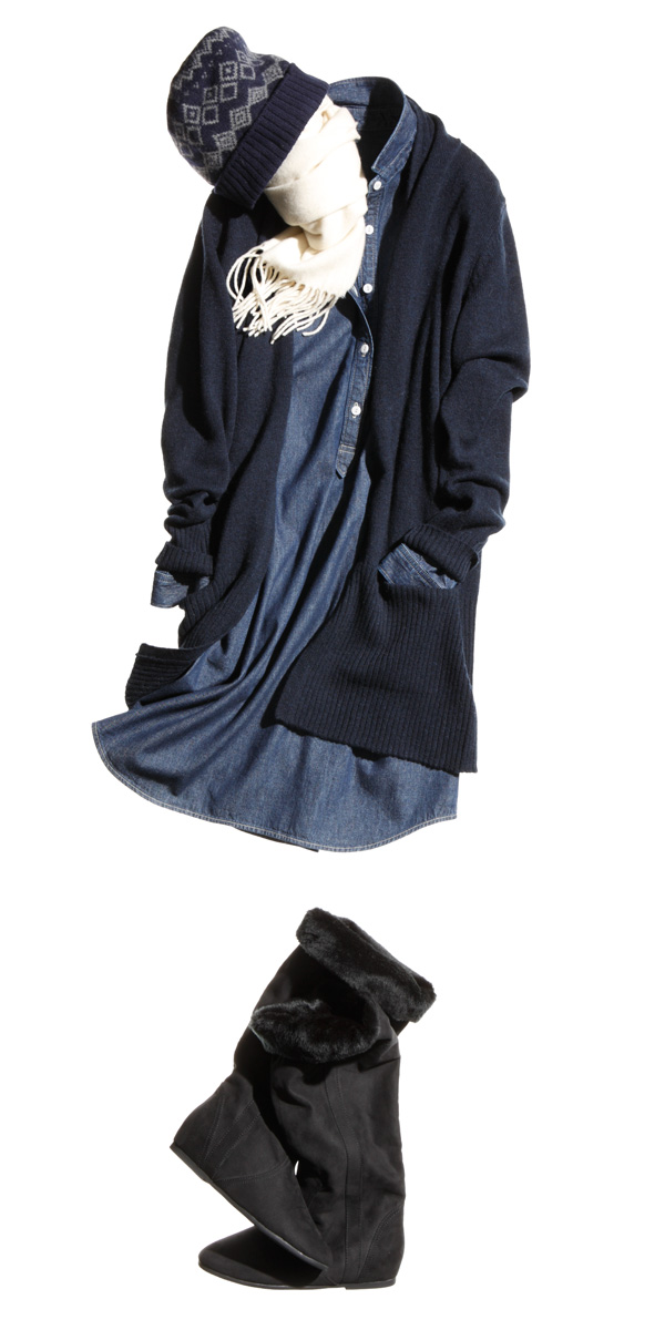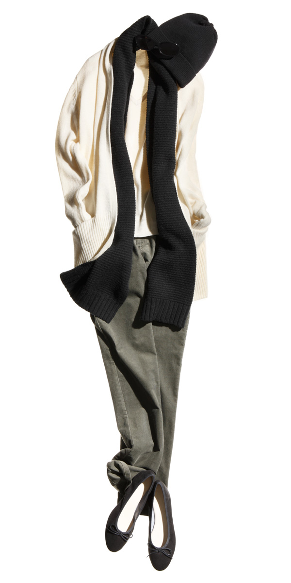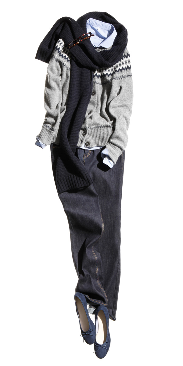 アクセントに柄入りニットを -