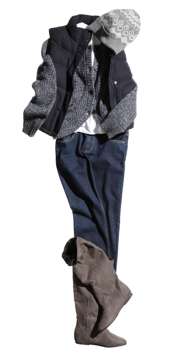 ニット×ダウンベストの