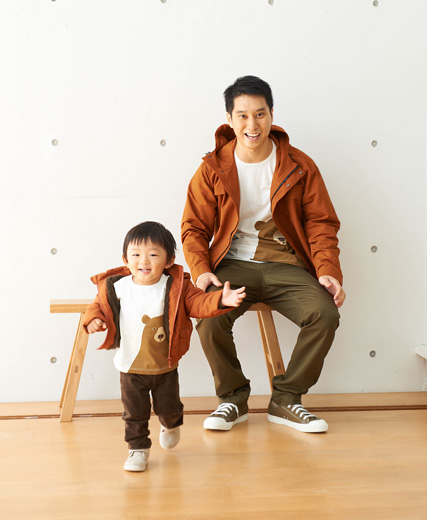 くまさんのTシャツは、大好きなパパとおそろい。一緒に歌いながら、森をお散歩したいね