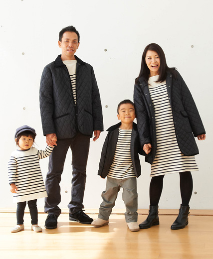 家族みんなで、おそろいのボーダー。四人いっしょのお出かけが、ますます楽しくなるね