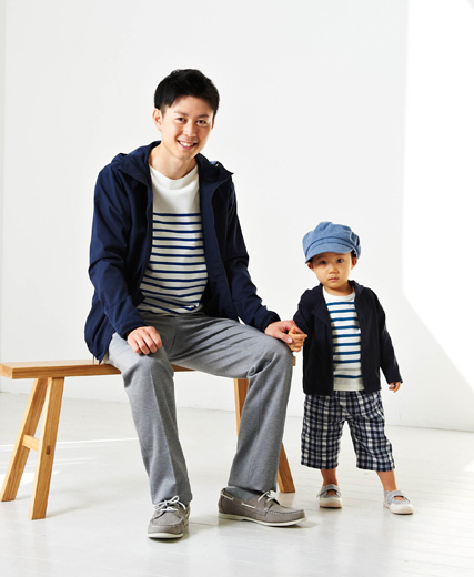 きれいめマリン風のパーカー×ボーダー。ぼくのキャスケットは、かっこいいパパのお見立て
