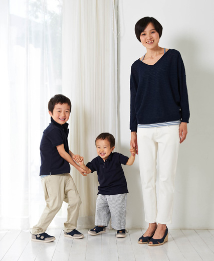ママのお気に入りは、ネイビーの着こなし。ぼくたちも、かっこよく見えるかな