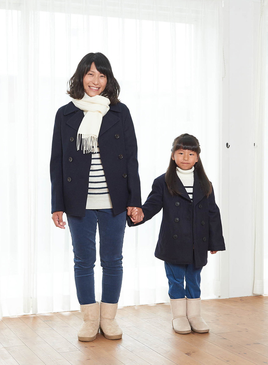 今日は、コートも、ブーツも、セーターも全部おそろいなの!