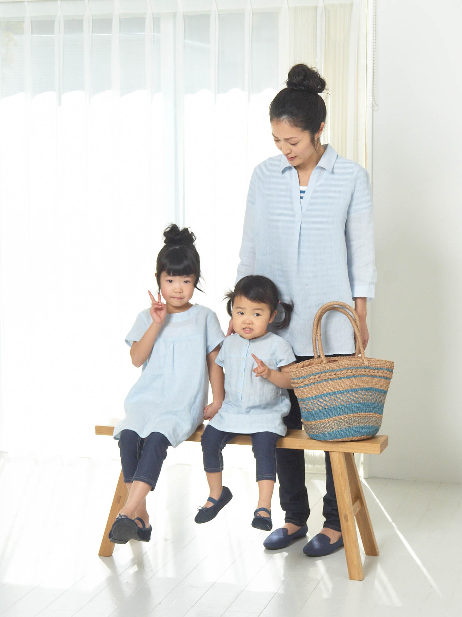 妹といっしょに、はい、ポーズ。フレンチリネンのチュニックは、着心地がよくってお気に入りなの。