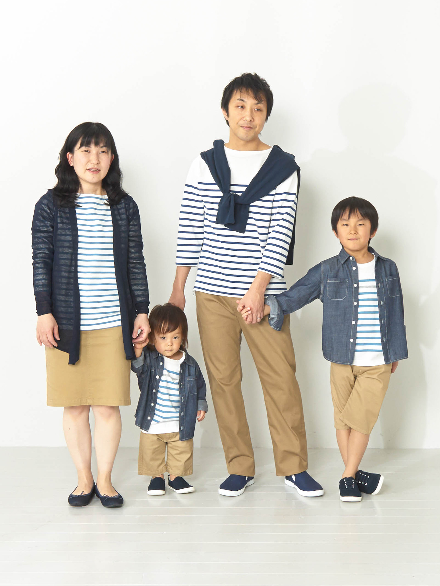 おそろいのボーダーTシャツで記念撮影。みんなそろって、ハイ、チーズ!