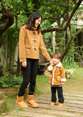 無印良品の秋冬衣料品を用いた、親子の仲良しコーディネートを紹介します。
