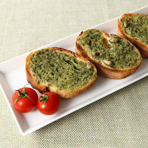 バジルトースト 材料 パスタソース 国産バジルを使ったジェノベーゼ バゲット バター つくり方 バゲットを3センチの厚さに切る。 国産バジルを使ったジェノベーゼを器にあけて、バゲットにぬる。5mm角くらいの大きさのバターをその上に置き、トースターに入れて5分程度焼く。