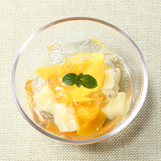 水のゼリー+フルーツ 材料 ライチソース付き 月山の天然水を味わうゼリー ミックスフルーツ缶詰 ミント つくり方 月山の天然水を味わうゼリーを器にあけ、フォークなどで細かくする。 フルーツ缶詰を器に盛り付ける。シロップも適量入れる。 1を2に入れ、ミントの葉を飾る。
