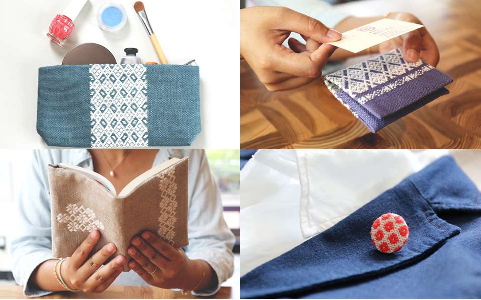 300種類以上の伝統模様があるというこぎん刺しですが、それらは女性の美意識が生んだもの。かつてのものは藍の麻布に白糸が基本でしたが、弘前こぎん研究所では、現代のくらしにも取り入れやすいよう様々な配色で展開しています。