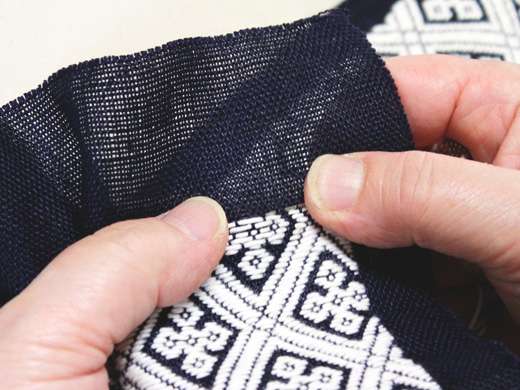 こぎん刺しは、縦糸を1・3・5・7と奇数の目を拾って刺していくのが特徴です。集中力のいる作業で、こぎん刺し歴30年の職人さんも「出来上がると毎回達成感がある」と話します。