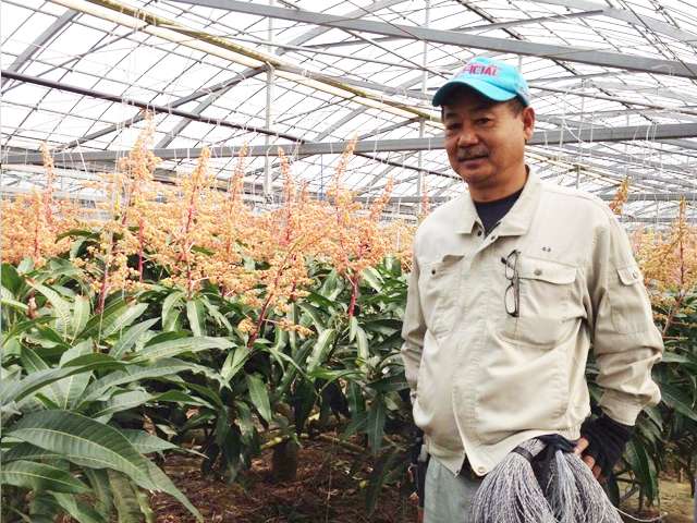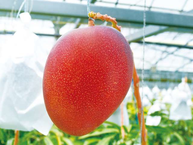 また、マンゴーはハウスで栽培しています。受粉時期が多雨時期と重なるので、雨による受粉阻害・病気発生を防止し、台風からも守ってくれます。夏場のハウス内での作業は大変ですが、おいしいマンゴーを実らせるためにコツコツと手入れをしています。