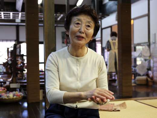 地機は自分自身が機の一部になって、手と足を使いながら座って織ります。「芸術家を養成するのではなく、あくまで裂織を伝えつなげていきたい」と、保存会事務局長の小林さんは話します。