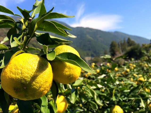 「黄金の村」が生産しているのは、農林水産省のガイドラインに基づき栽培期間中、農薬・化学肥料不使用の特別栽培の木頭ゆず。ゆず果汁はもちろん、果皮や種まで安心してご利用いただけます。