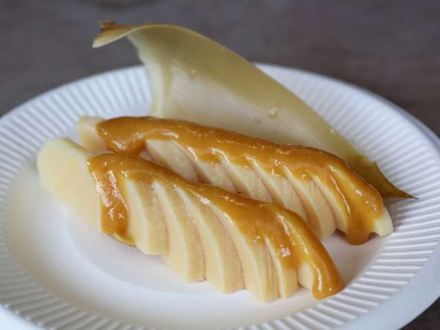 三村さん曰く、「タケノコは鮮度が命」。合馬たけのこ体験園では地中に埋まったタケノコを朝掘りし、その日のうちに出荷することにこだわっています。タケノコが届いたら早めにアク抜きをしてお召し上がりください。まずは冷ましてワサビ醤油や酢味噌などをかけて食べるのがオススメです!