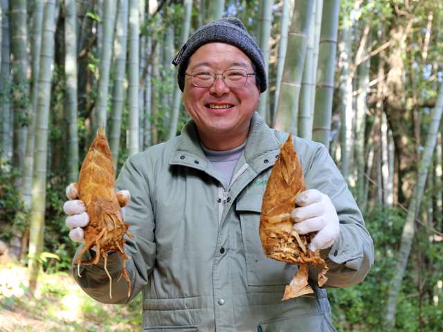 「竹林は1年置いたらもう手がつけられなくなる。それだけ繁殖力が強いんです」そう話す生産者の三村訓章(のりあき)さんは、子どもの頃から竹と共存してきたと語ります。今では自分の山以外の手入れも請負い、「たけのこ守り隊」としても活躍しています。