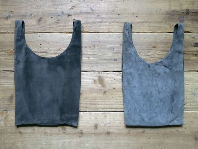 右側のバッグは何回も洗濯したものです。となりの新品と比べると洗いざらしな風合いになり、デニムのような経年変化を楽しめます。